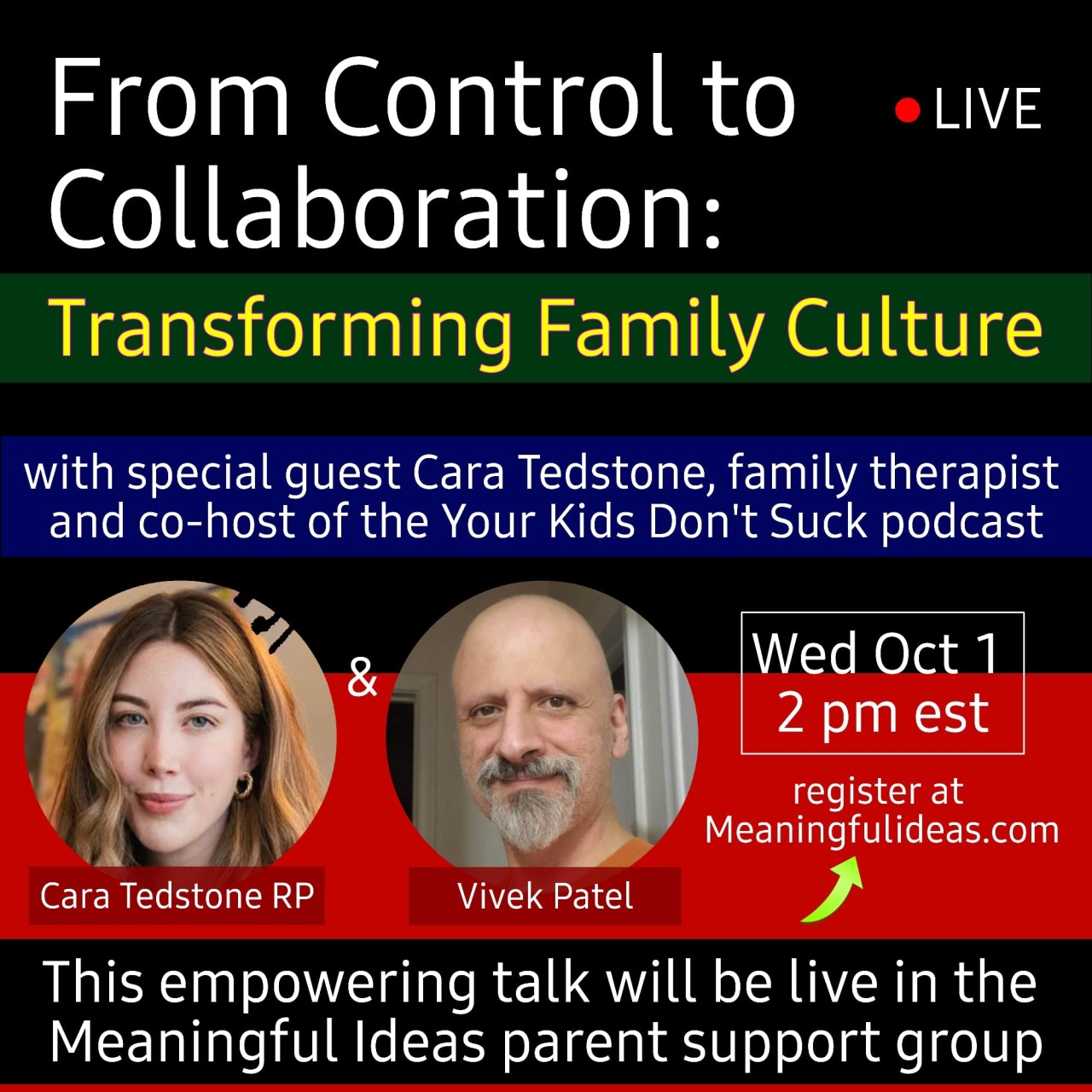 In the Meaningful Ideas Membership Group, I go live every week to discuss a different aspect of Non-Coercive, Collaborative Parenting. We also have guest speakers come from time to time. I have a number of amazing humans that are going to come speak to us in the near future.